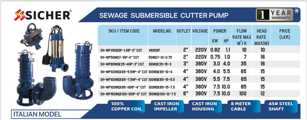 - Cutting impeller which is wear-resistant called: SH-WP#WQ the pump body, motor bracket, and roof are all durable for cast iron material.